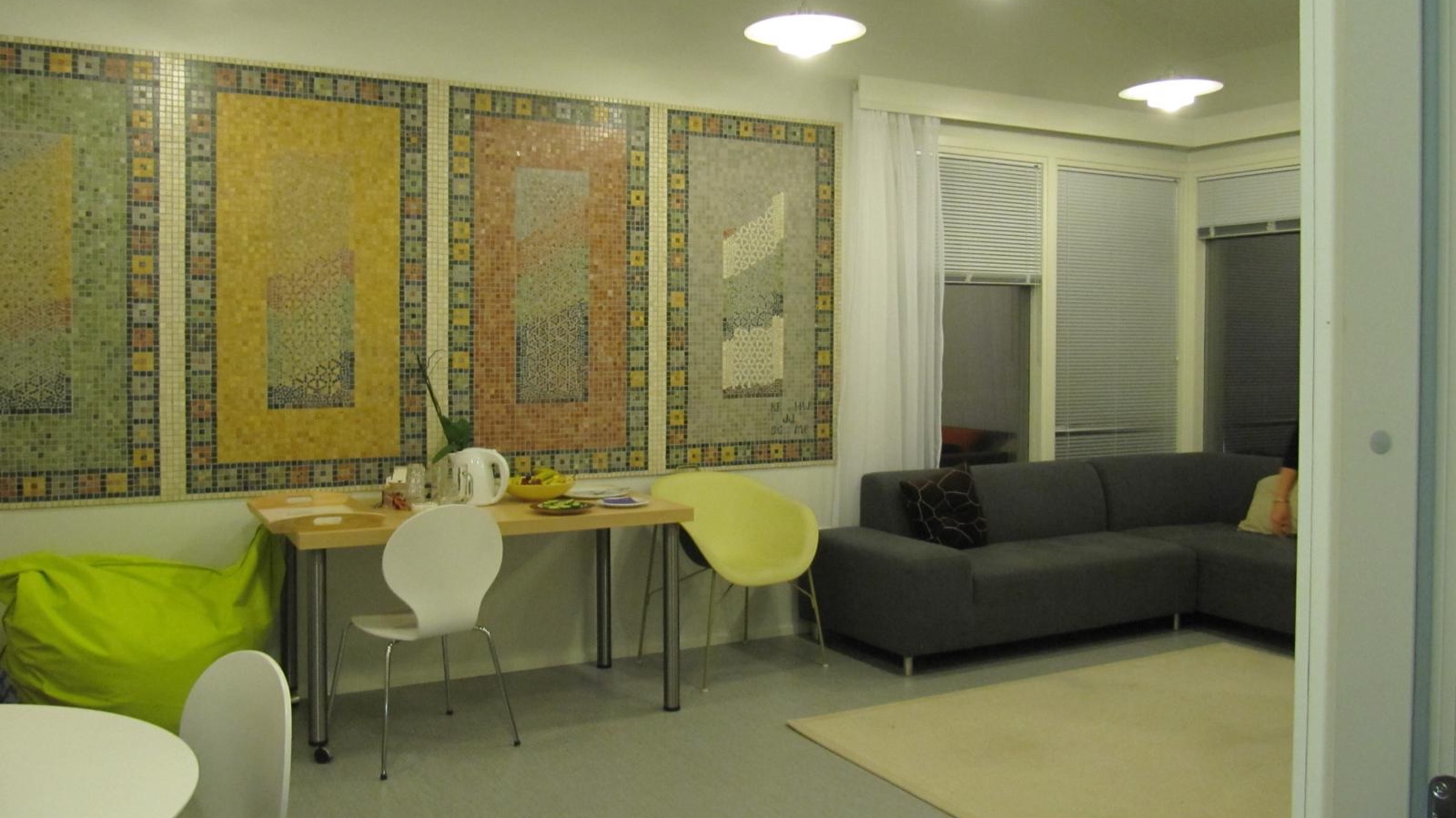Puolisen vuotta ennen talon valmistumista ja varsinaista muuttoa meille tarjoutui ainutlaatuinen mahdollisuus. Eräs mosaiikkitaiteilija oli kuullut projektistamme ja hän oli juuri avautuneen oman tähti-aiheisen näyttelynsä vuoksi inspiroitunut talomme nimestä Stjärnhem. Hän halusi yhdessä tulevien talon asukkaiden kanssa toteuttaa talon yhteisiin tiloihin valtavan suuren, seinän kokoisen mosaiikkitaideteoksen. Tämä oli meille onnepotku, koska työn parissa saisimme talon valmistumista odotellessamme seuraavan puolen vuoden ajan käytetyksi hyödyllisellä tavalla, suureen elämänmuutokseen valmistautuen.